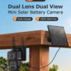 Зовнішня бездротова камера відеоспостереження на сонячній батареї з живленням від вбудованих акумуляторних батарей та сонячної панелі, а також низьке споживання та просте встановлення. Великий діапазон обертання: горизонтальний: 90 °, вертикальний: 120 °; кут огляду забезпечує повний огляд на 360 °.