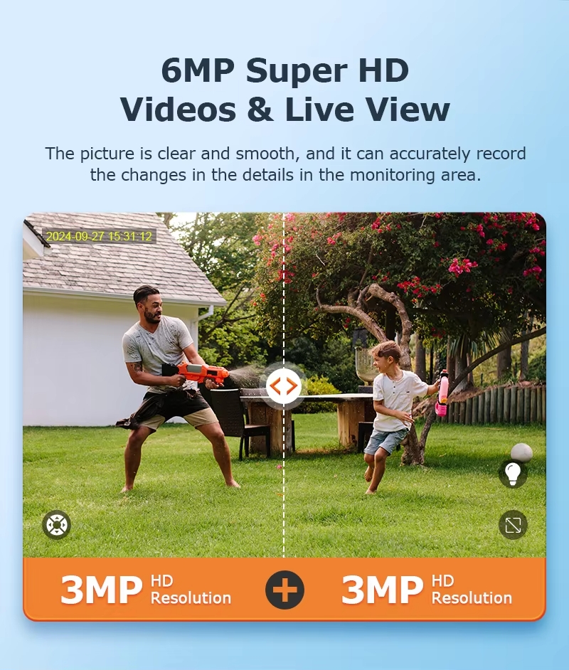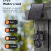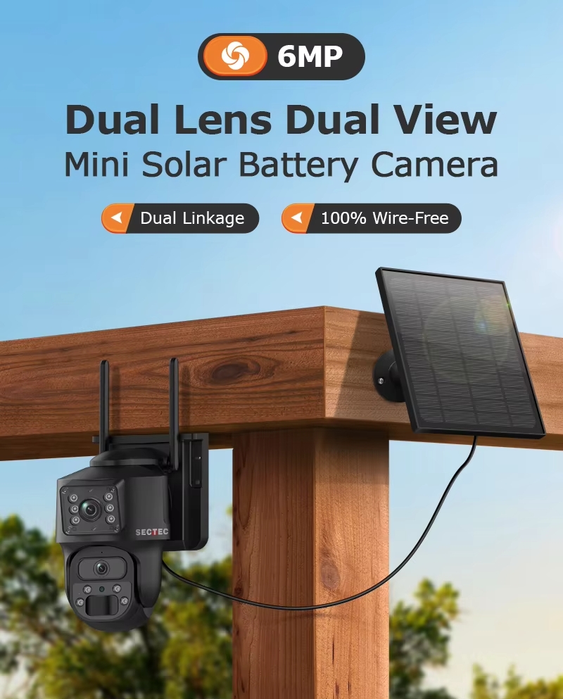 Панорамний перегляд, насолоджуйтесь зображенням 6 Mp та відео в 1080P Full HD вдень та вночі. Сонячна камера безпеки також підтримує нічне бачення, виявлення руху та двосторонню передачу звуку.