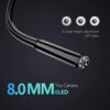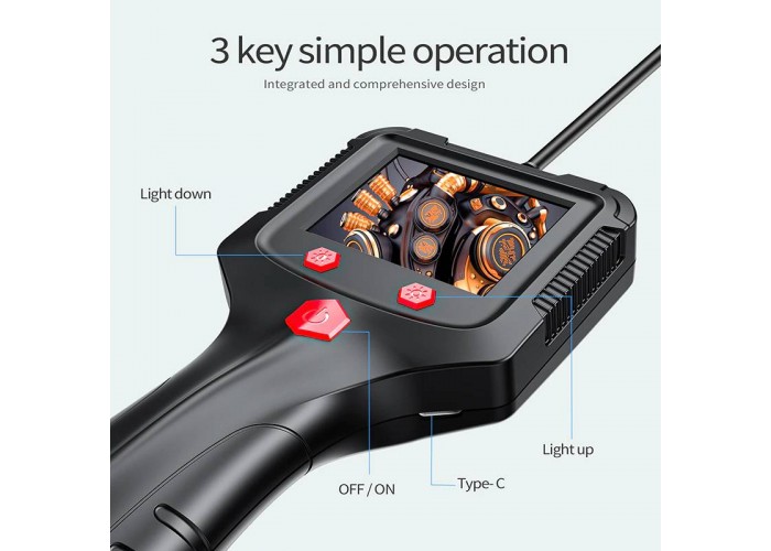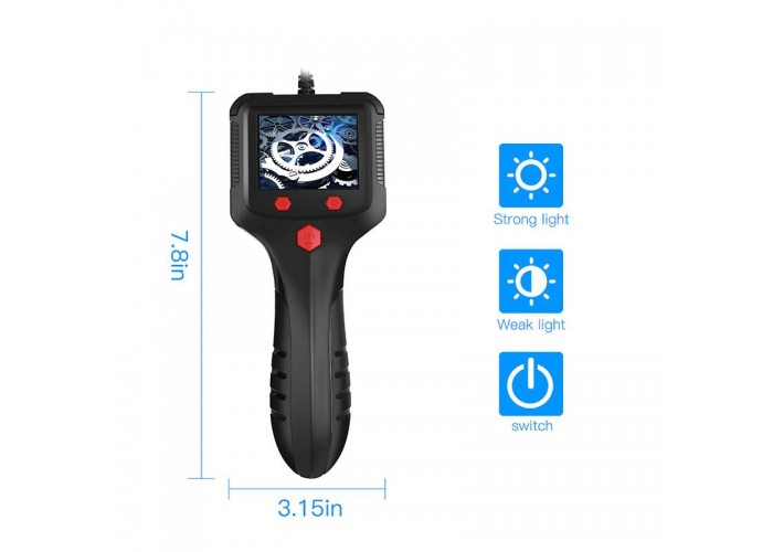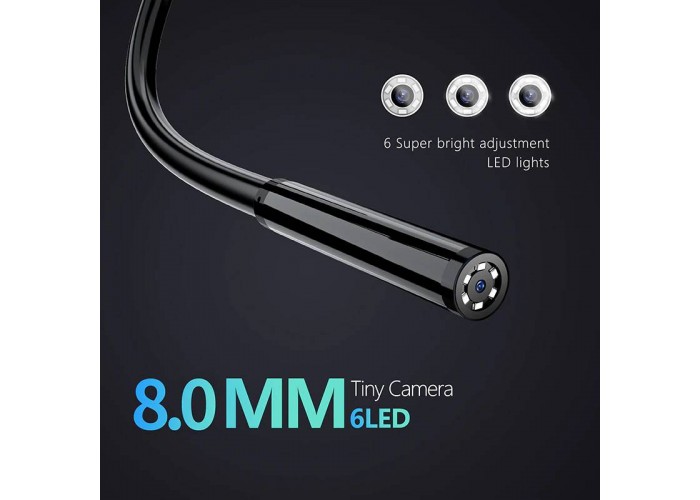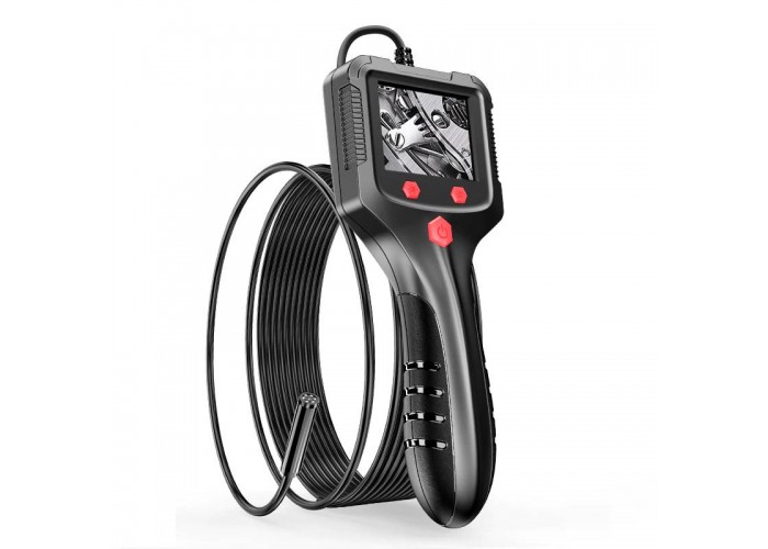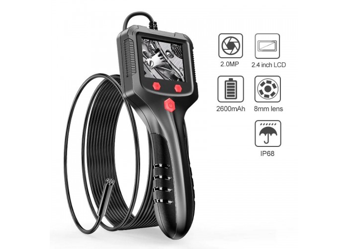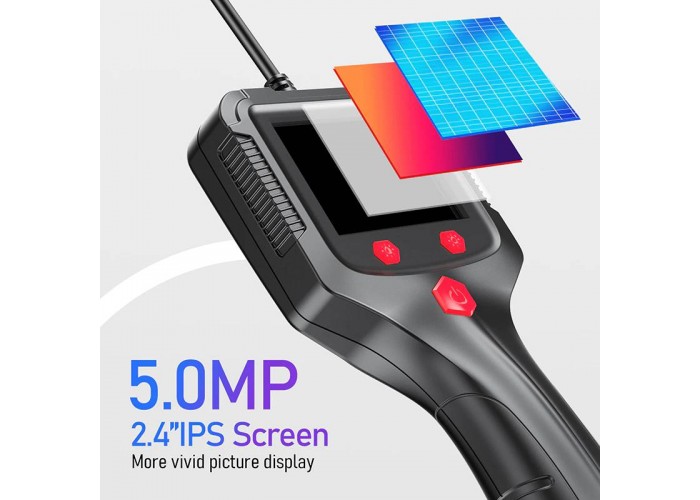 Промисловий ендоскоп Inskam P100 має дисплей 2,4 дюйма, роздільна здатність відео Full HD 1920*1080P. Напівжорсткий кабель тримає форму, за його допомогою можна проштовхнути зонд у місця із забрудненням або перешкодами, наприклад, у трубу під 90 градусів і т.д. Діаметр зонда з камерою 8мм, має підсвічування з 6 LED світлодіодів з регулюванням яскравості. Кут огляду камери 70 градусів, фокусна відстань 4 – 10 см. Зонд герметичний із захистом від вологи за стандартом IP67, ендоскоп можна використовувати під водою та у вологих чи пильних місцях.