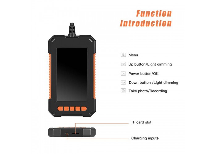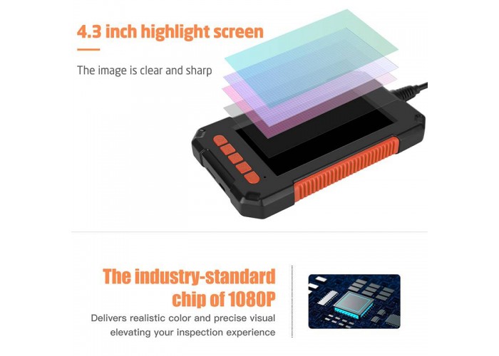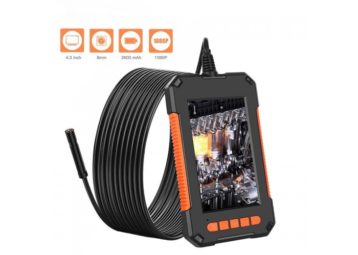 Кабель напівтвердий, добре утримує форму, зручний в роботі за будь-яких умов. Наявність власного 4,3 дюймового кольорового IPS екрану перетворює ендоскоп на повністю автономний пристрій.