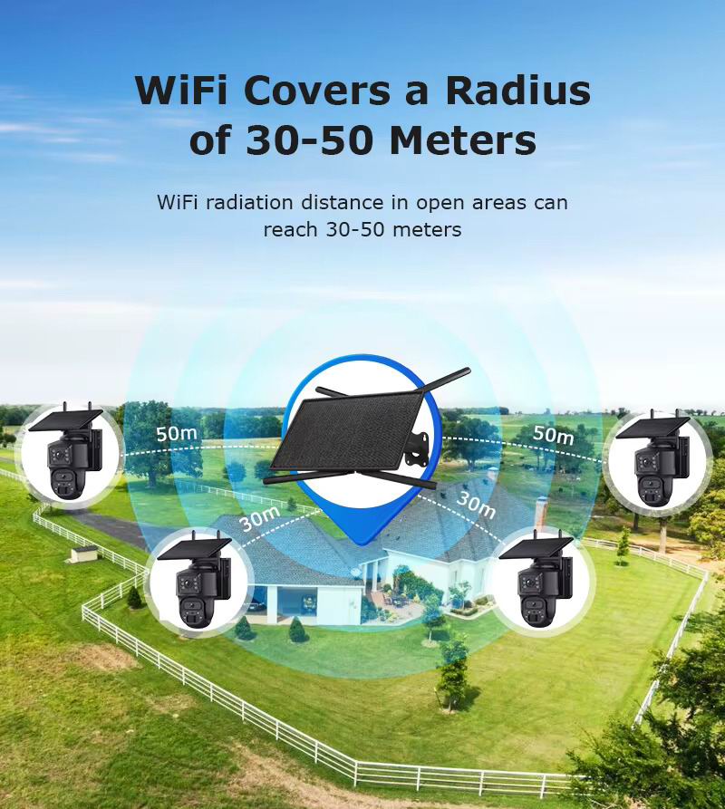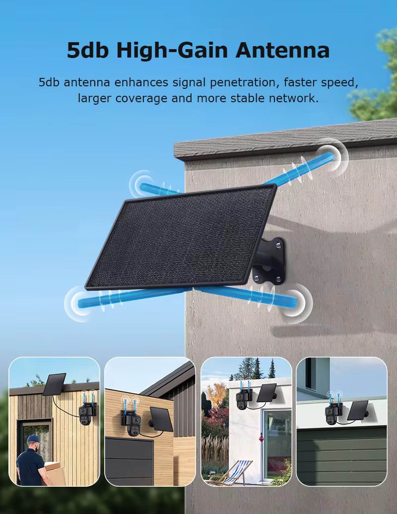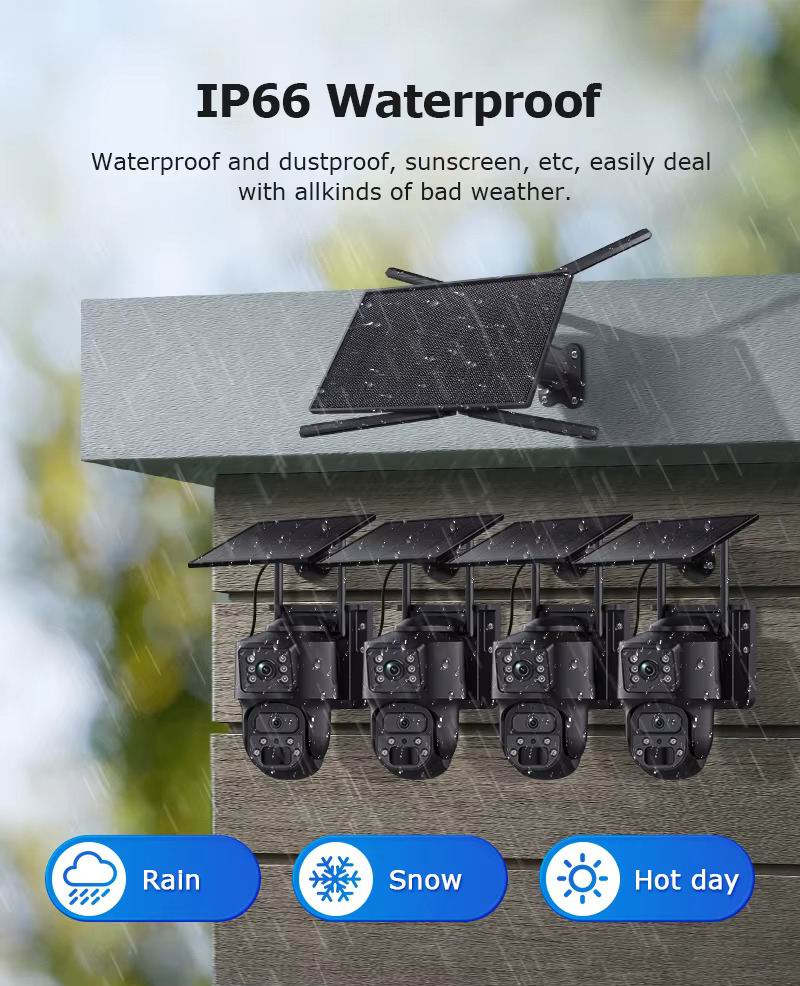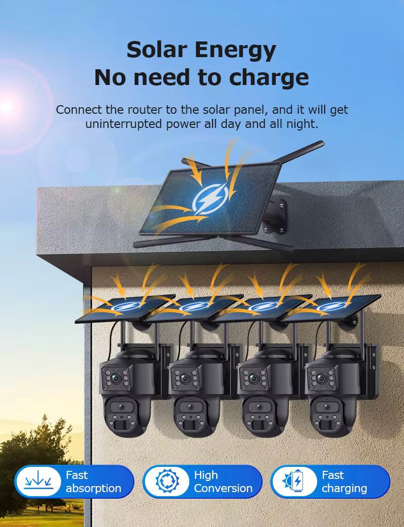 Маршрутизатор SECTEC Solar 4G – це не просто маршрутизатор, а комплексне рішення для безпеки. Пристрій постачається з 4 двооб’єктивними PTZ-камерами, які пропонують радіус дії Wi-Fi 500 м, забезпечуючи повне покриття вашої власності. Ці камери оснащені Wi-Fi-з’єднанням, що дозволяє вам контролювати навколишнє середовище та отримувати сповіщення на свій мобільний пристрій. Камери також оснащені датчиком високої роздільної здатності, що забезпечує чітке та детальне відео. Клас захисту IP66 усієї системи гарантує, що вона може витримувати суворі погодні умови, що робить її надійним вибором для всепогодної безпеки.