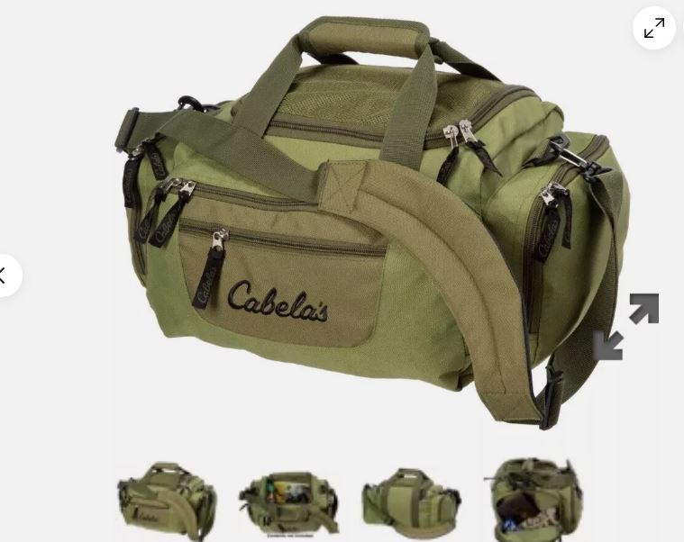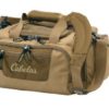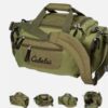 Сумка для полювання Cabela’s Catch-All Camo Gear Bag виготовлена з міцної погодостійкої нейлонової тканини, має камуфляжне забарвлення. Міцний ремінь для перенесення і зручні ручки. Сумка має 6 зовнішніх кишень. Габаритні розміри: 41 х 25 х 20 см. Загальний внутрішній об’єм сумки 20 л. Вага: 540 грам.