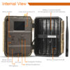 - Автономна робота до 8 місяців. Живлення фотопастки здійснюється від 12 батарей типорозміру АА, що при використанні якісних батарей дозволить працювати фотопастці автономно до 8 місяців.