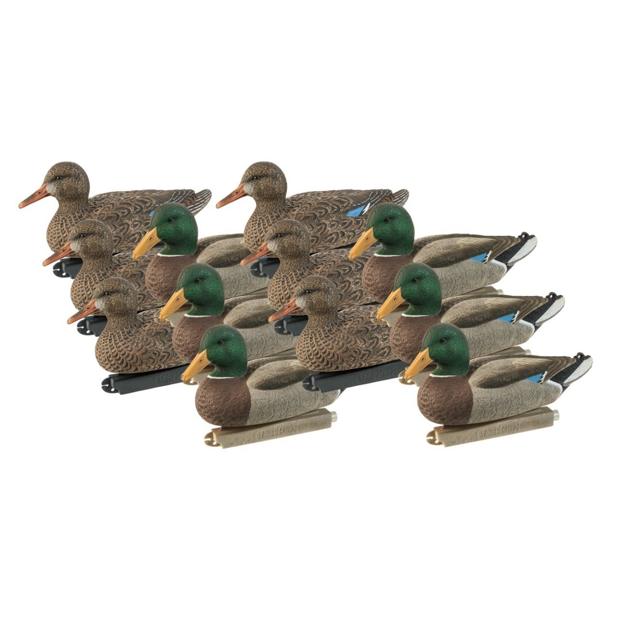 Комплект з 12 опудал в відпочиваючих позах. 6 Селезнів, 6 качок. Зроблені із міцного гнучкого пластику. М’яке, суперреалістичне забарвлення. Виважена конструкція кіля створює природний рух на воді.